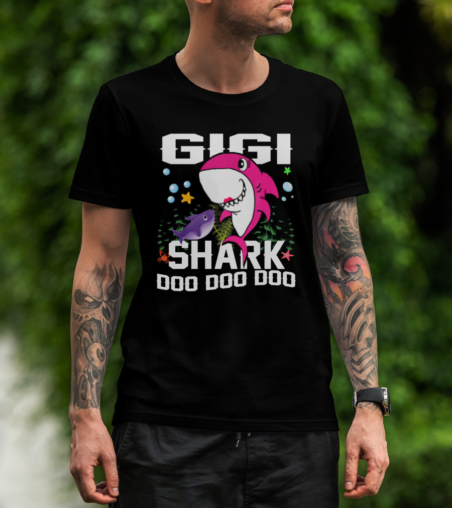 The Gigi Shark Doo Doo Doo Mother Gramma Halloween T-shirt is designed for everyday wear and a consistent fit. Fabric is pre-shrunk ring-spun cotton with durable stitching. See the size chart below for exact measurements.