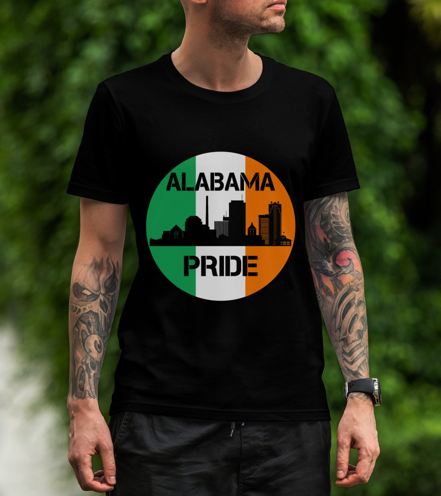 The Alabama Pride Irish Flag Skyline T-shirt is designed for everyday wear and a consistent fit. Fabric is pre-shrunk ring-spun cotton with durable stitching. See the size chart below for exact measurements.