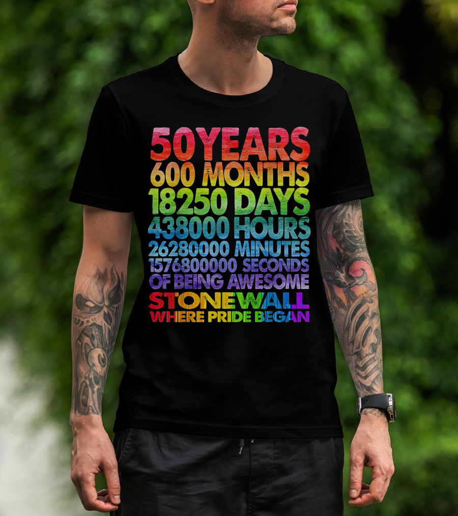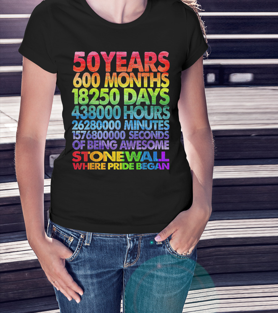 50 Years 600 Months 18250 Days 438000 Hours 26280000 Minutes 1576800000 Seconds Of Being Awesome Stonewall Where Pride Began T-Shirt