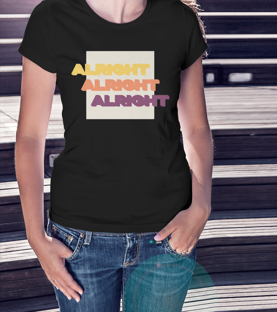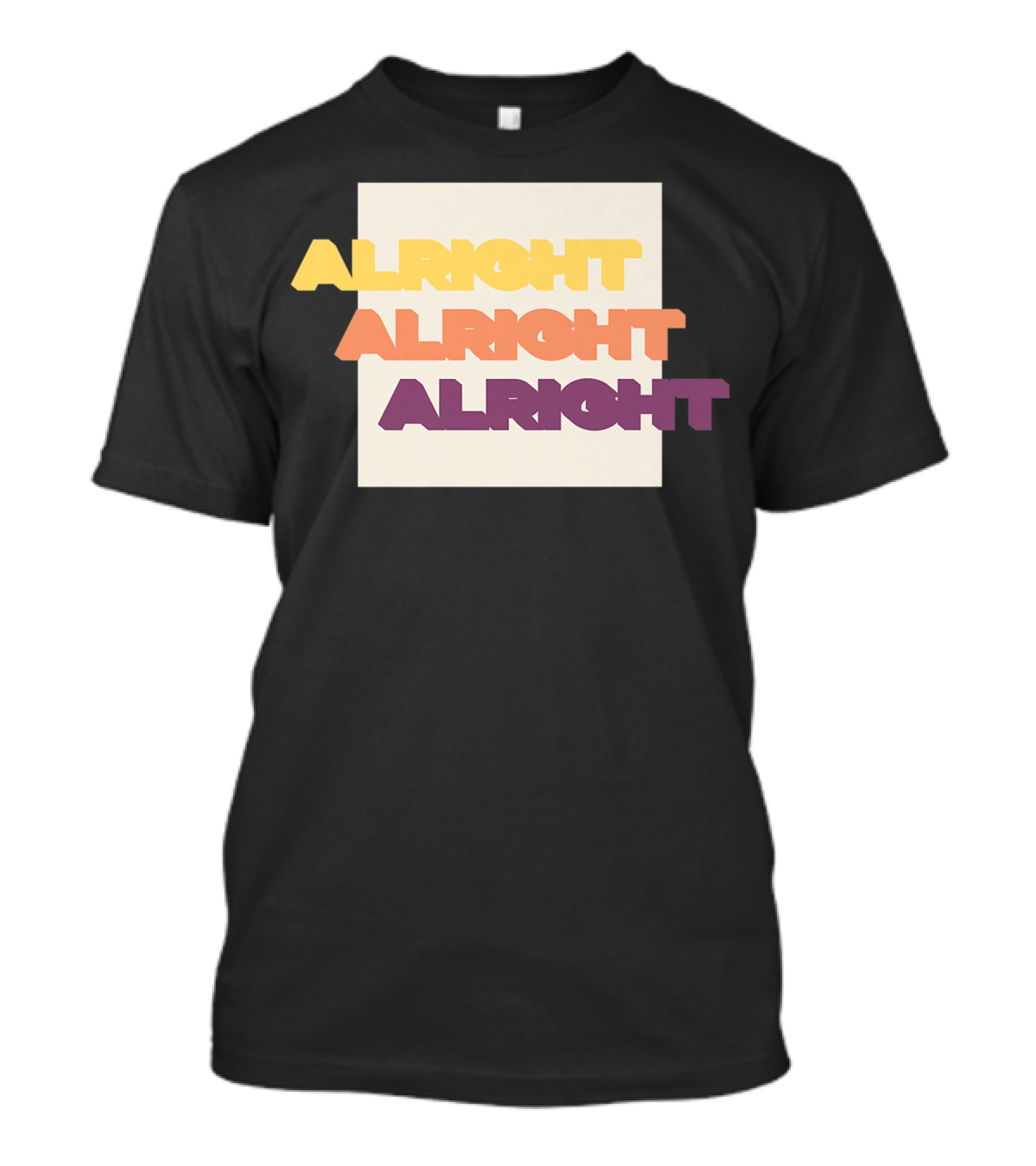 The Alright Alright Alright Retro Gradient T-shirt is designed for everyday wear and a consistent fit. Fabric is pre-shrunk ring-spun cotton with durable stitching. See the size chart below for exact measurements.
