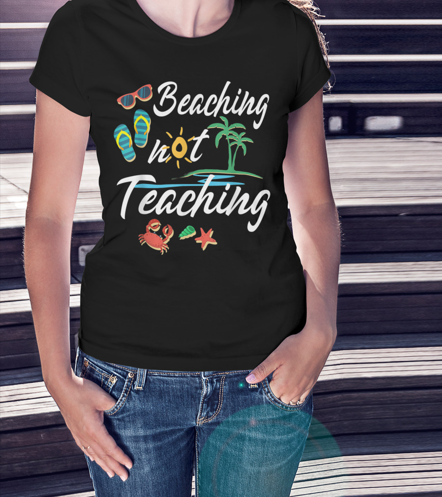 Beaching Not Teaching Funny Vacation Summer Crab Palm Tree And Flip Flops T-Shirt