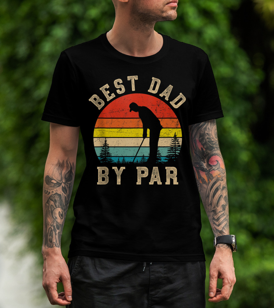Best Dad By Par Daddy Golf Lover Golfer Retro Vintage Sunset T-Shirt