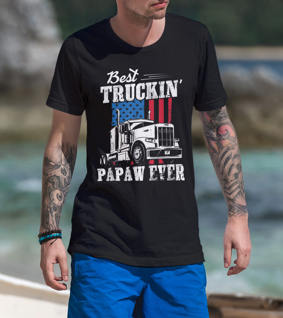 Best Truckin' Papaw Ever American Flag Father's Day T-Shirt
