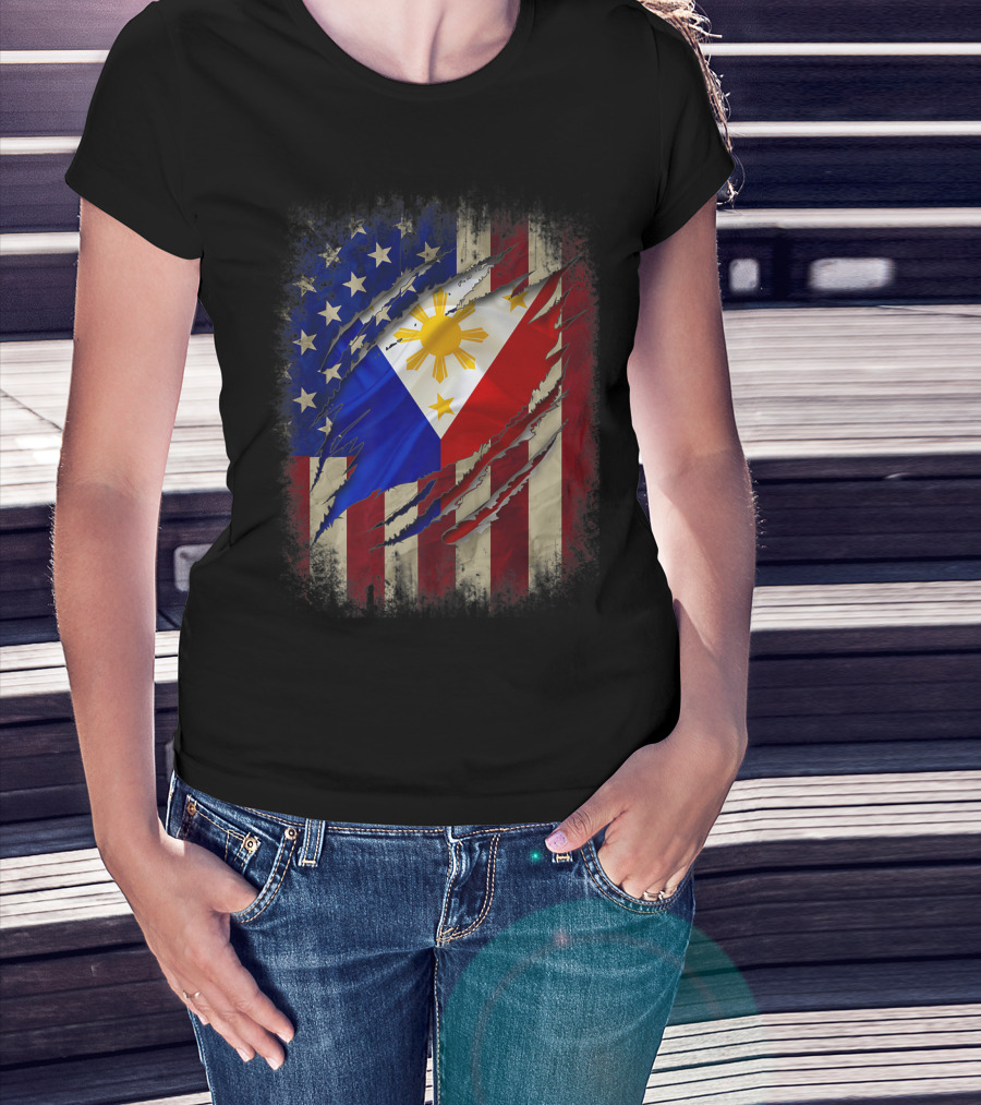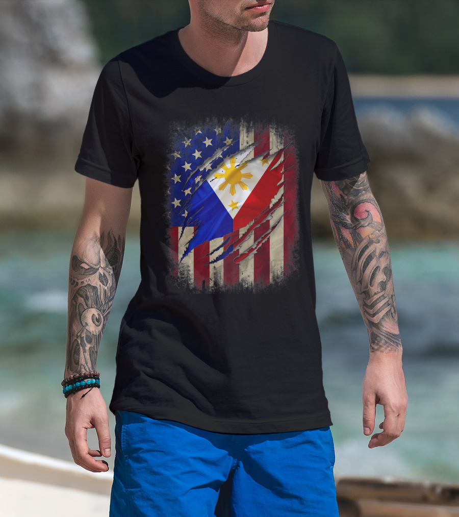 Filipino American Flag With Filipino Blood Inside T-Shirt