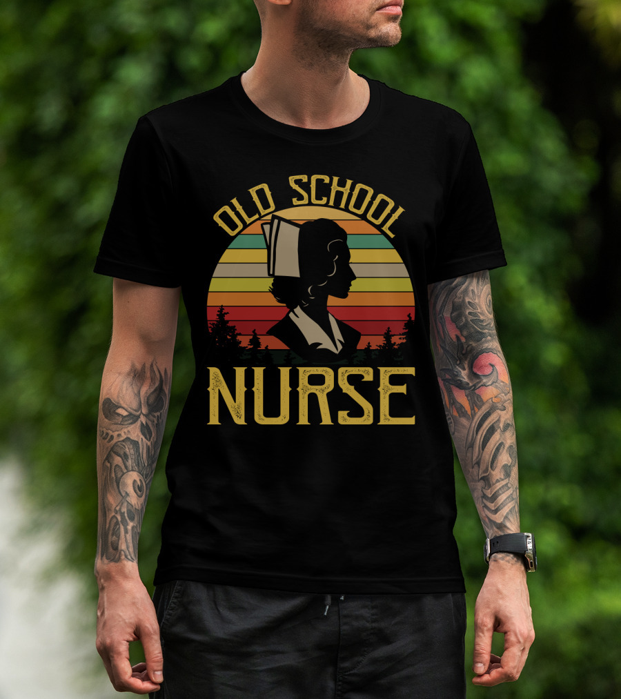 The Old School Nurse Vintage Sunset T-shirt is designed for everyday wear and a consistent fit. Fabric is pre-shrunk ring-spun cotton with durable stitching. See the size chart below for exact measurements.