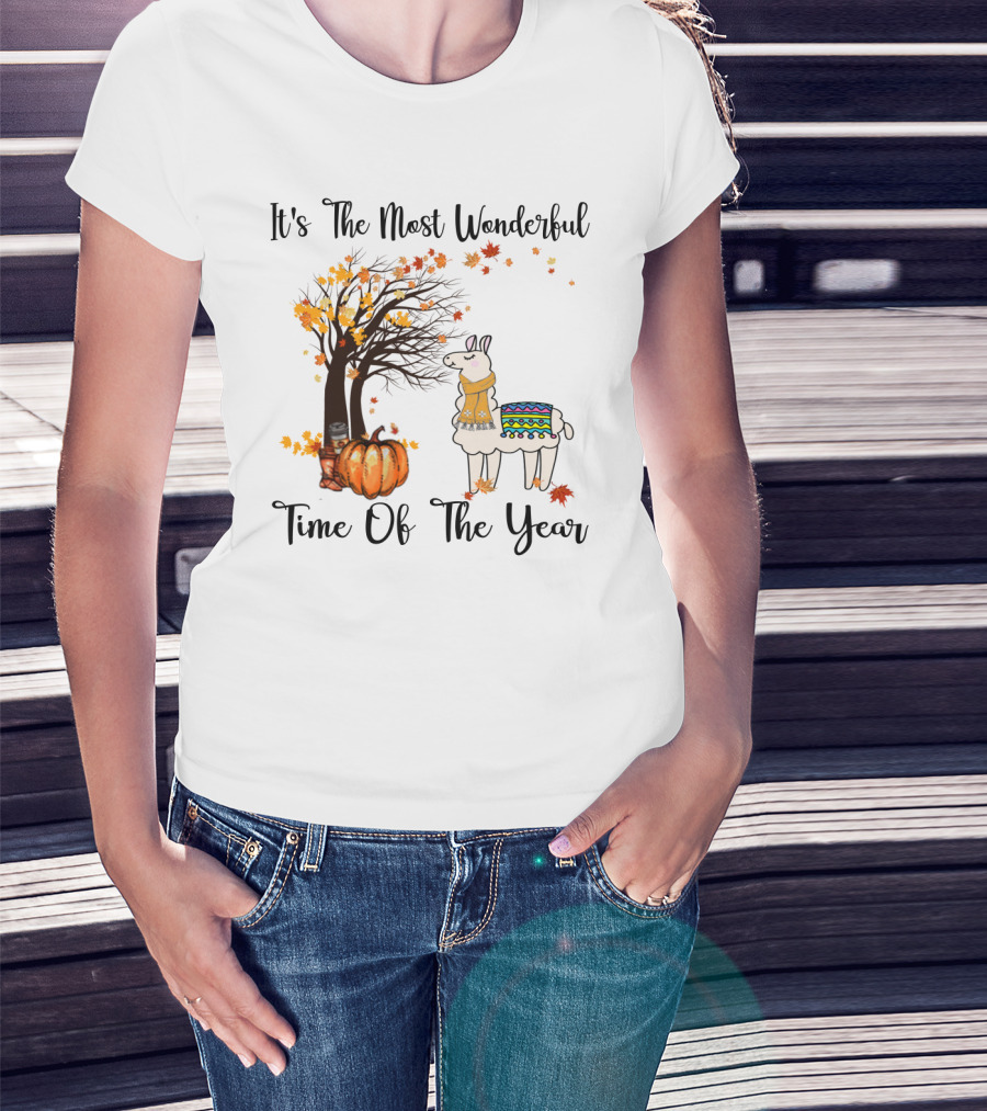 It's The Most Wonderful Time Of The Year Llama Autumn Leaves Pumpkin Tree T-Shirt
