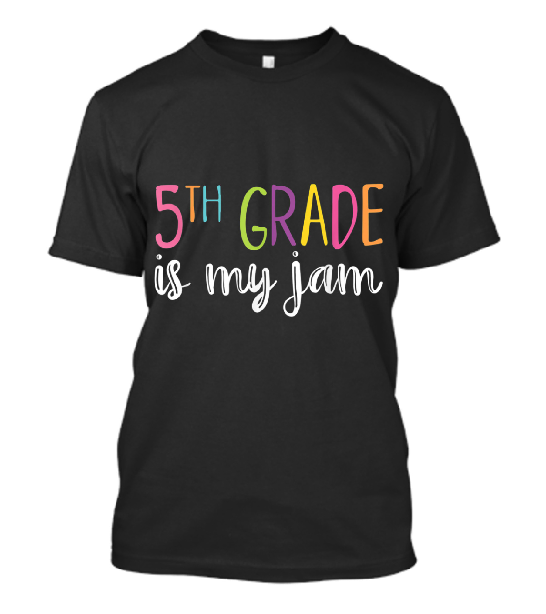 The 5th Grade Is My Jam Funny Fifth Grade Teacher T-shirt is designed for everyday wear and a consistent fit. Fabric is pre-shrunk ring-spun cotton with durable stitching. See the size chart below for exact measurements.