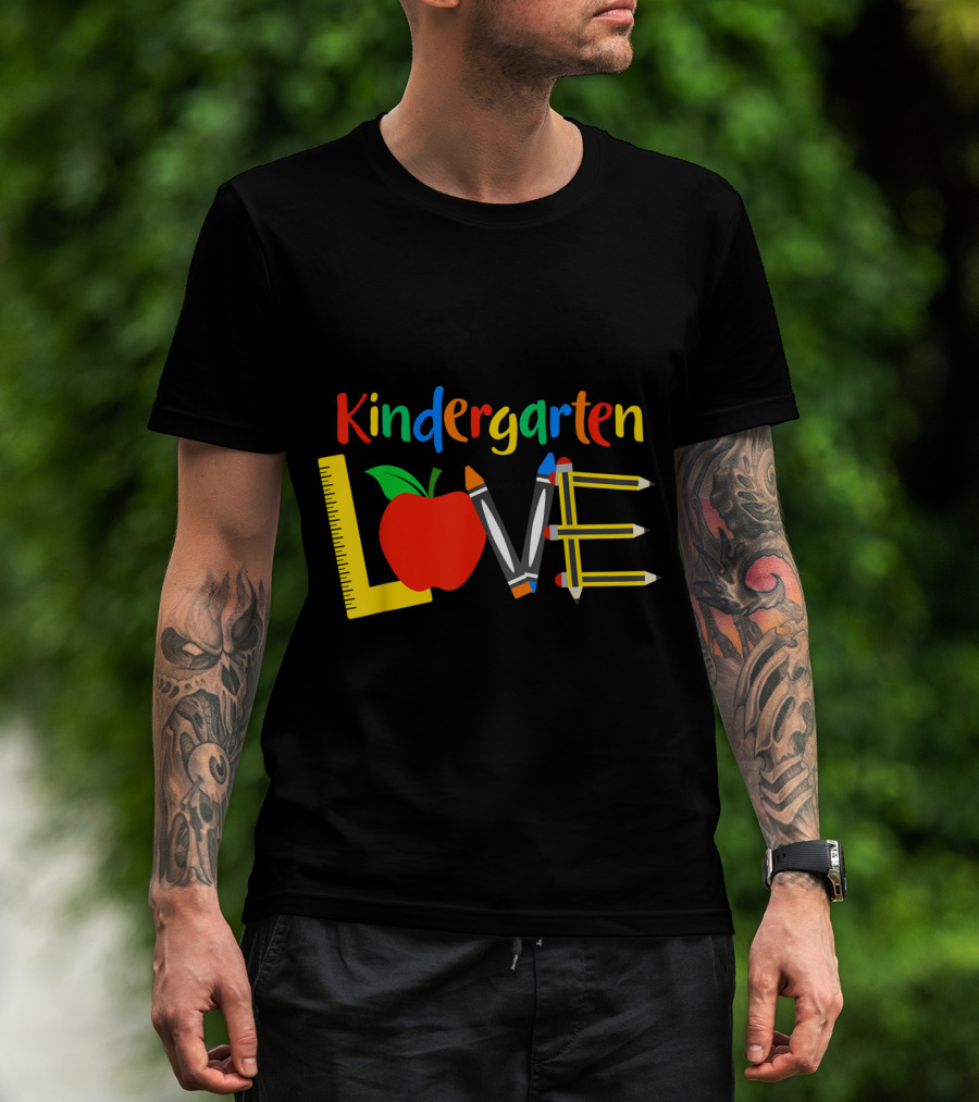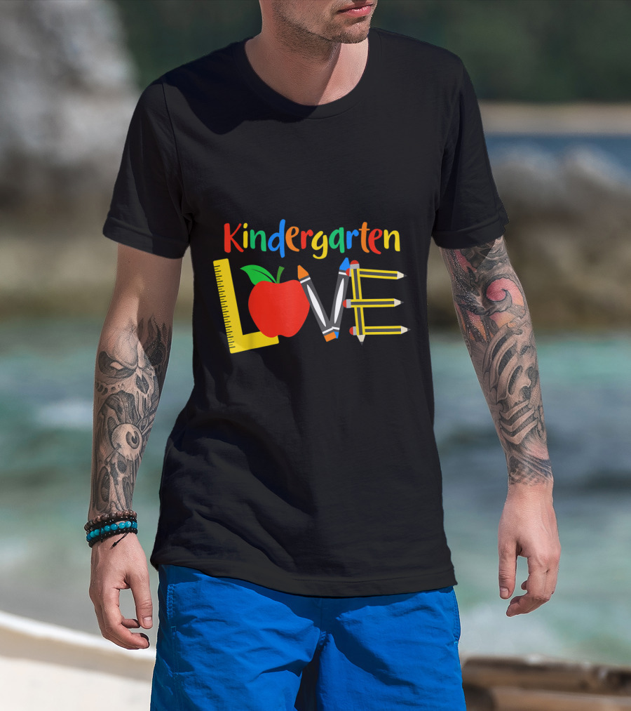 Kindergarten Love Apple Ruler Crayons Pencils T-Shirt