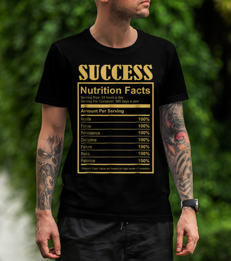 Success Motivational Funny Nutritional Facts Hustle Focus Persistence Discipline 100% T-Shirt