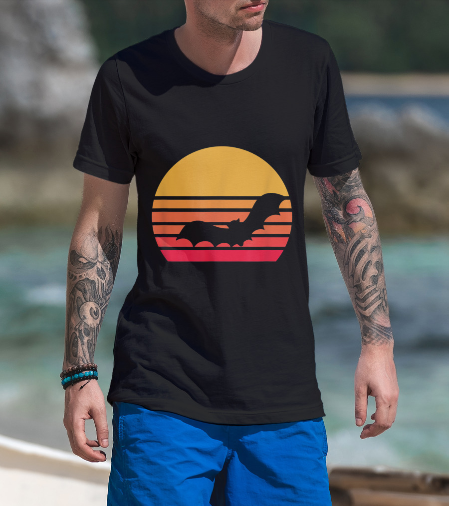 Vintage Sunset Halloween Bat Vampire T-Shirt