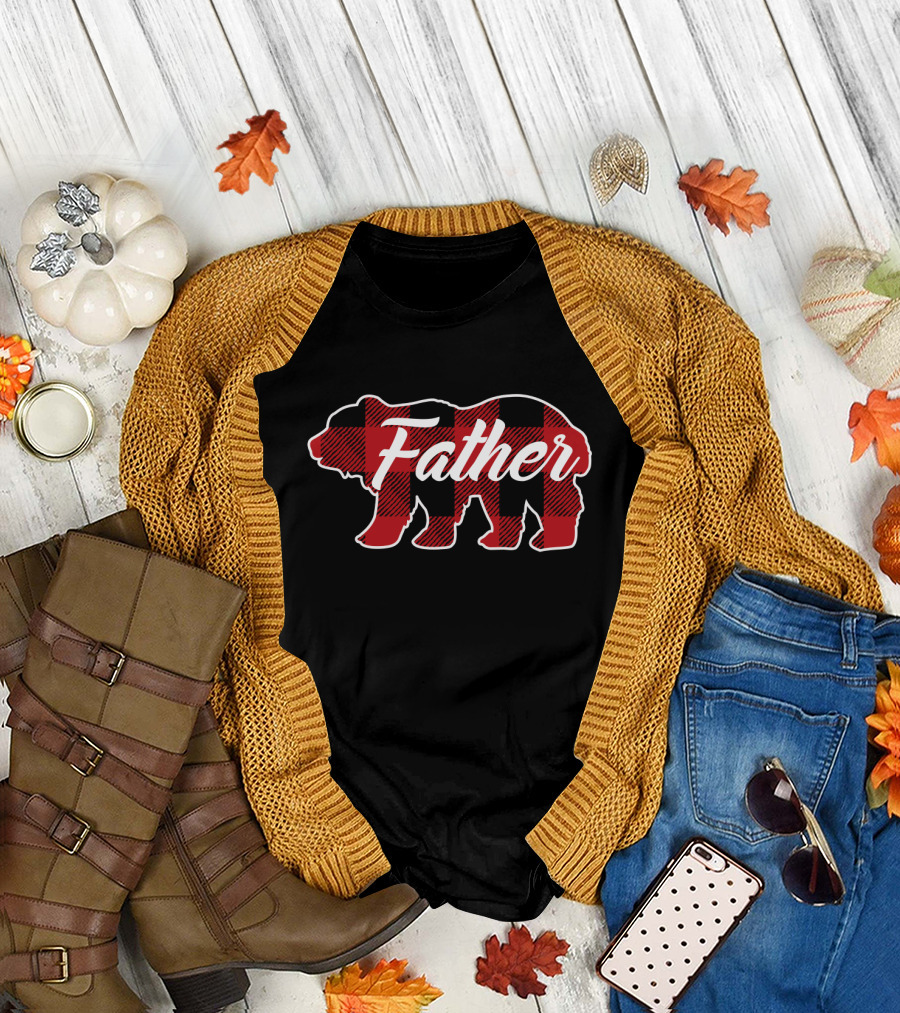 Family Christmas Matching Buffalo Plaid Bear Father T-Shirt
