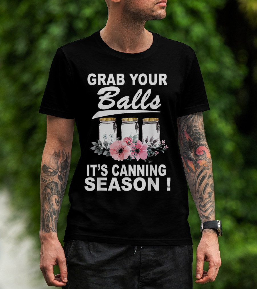 Grab Your Balls It's Canning Season Jars And Flowers T-Shirt