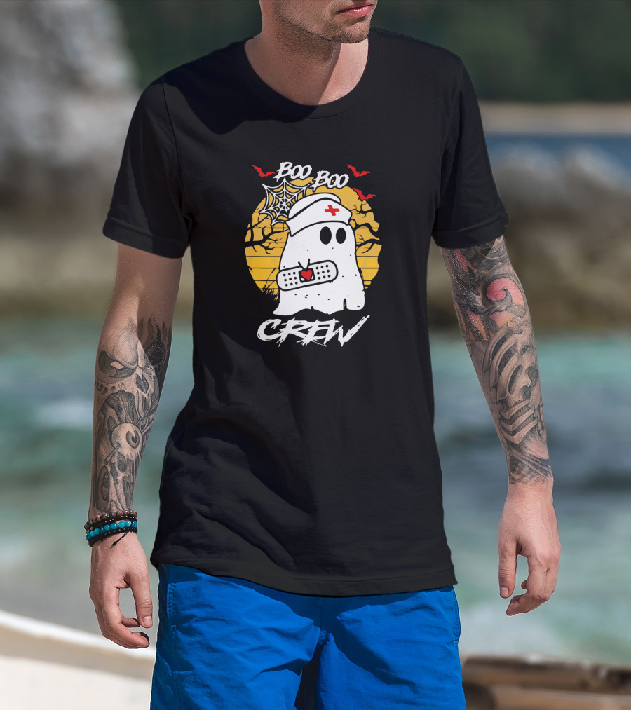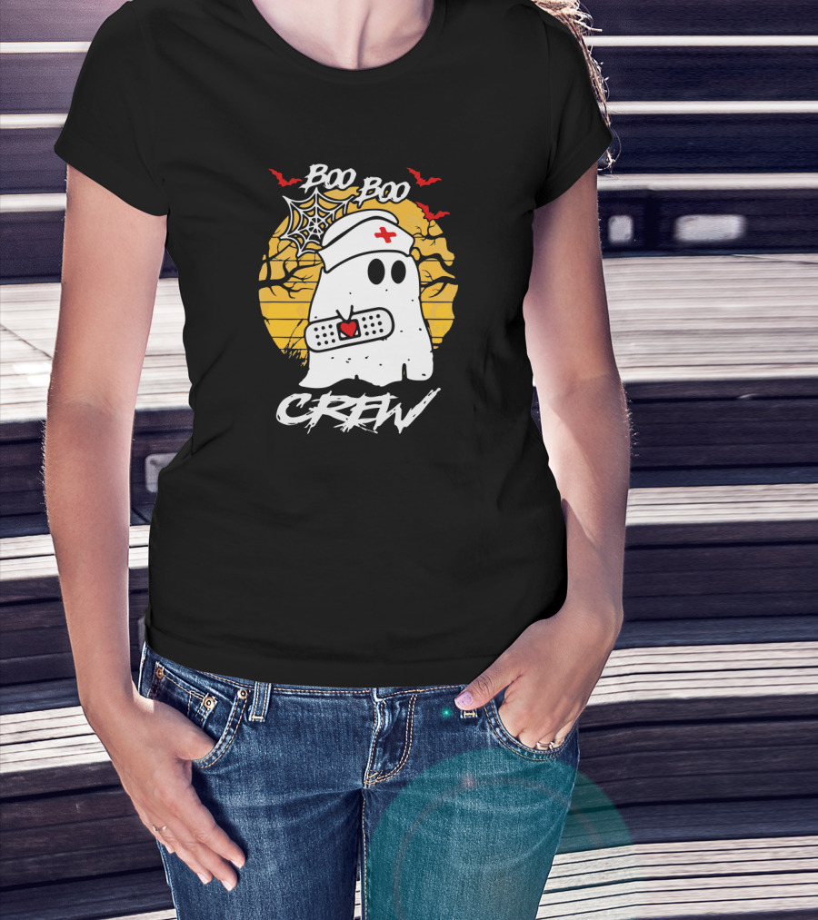 Boo Boo Crew Ghost Nurse Halloween Ghost Bandage Spider Web Bats T-Shirt