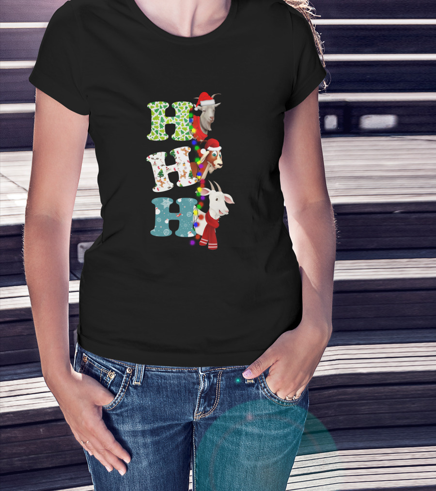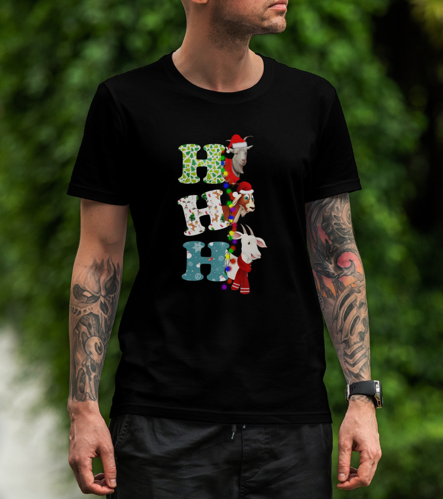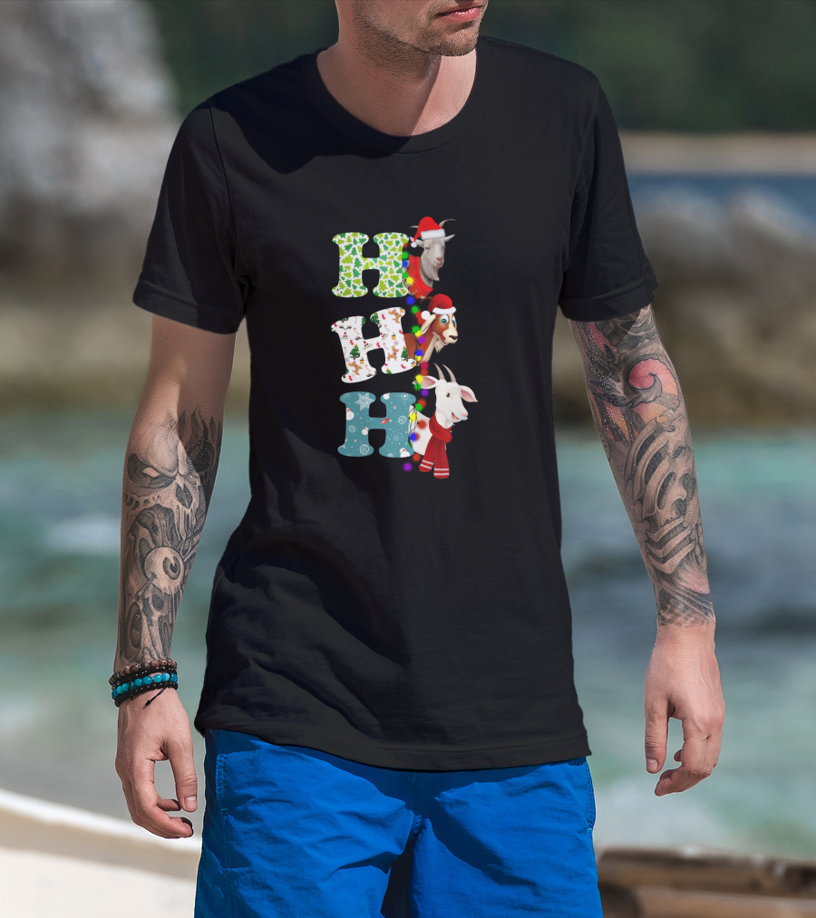 Hohoho Goat Christmas Santa Hats Holiday Lights T-Shirt