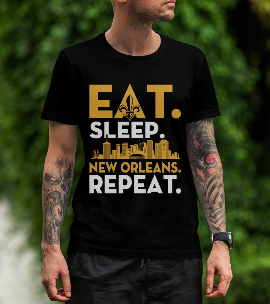 EAT SLEEP NEW ORLEANS REPEAT Fleur-de-Lis Skyline T-Shirt
