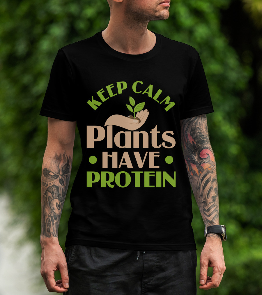 Keep Calm Plants Have Protein Vegan Vegetarian Hand Holding Sprout T-Shirt