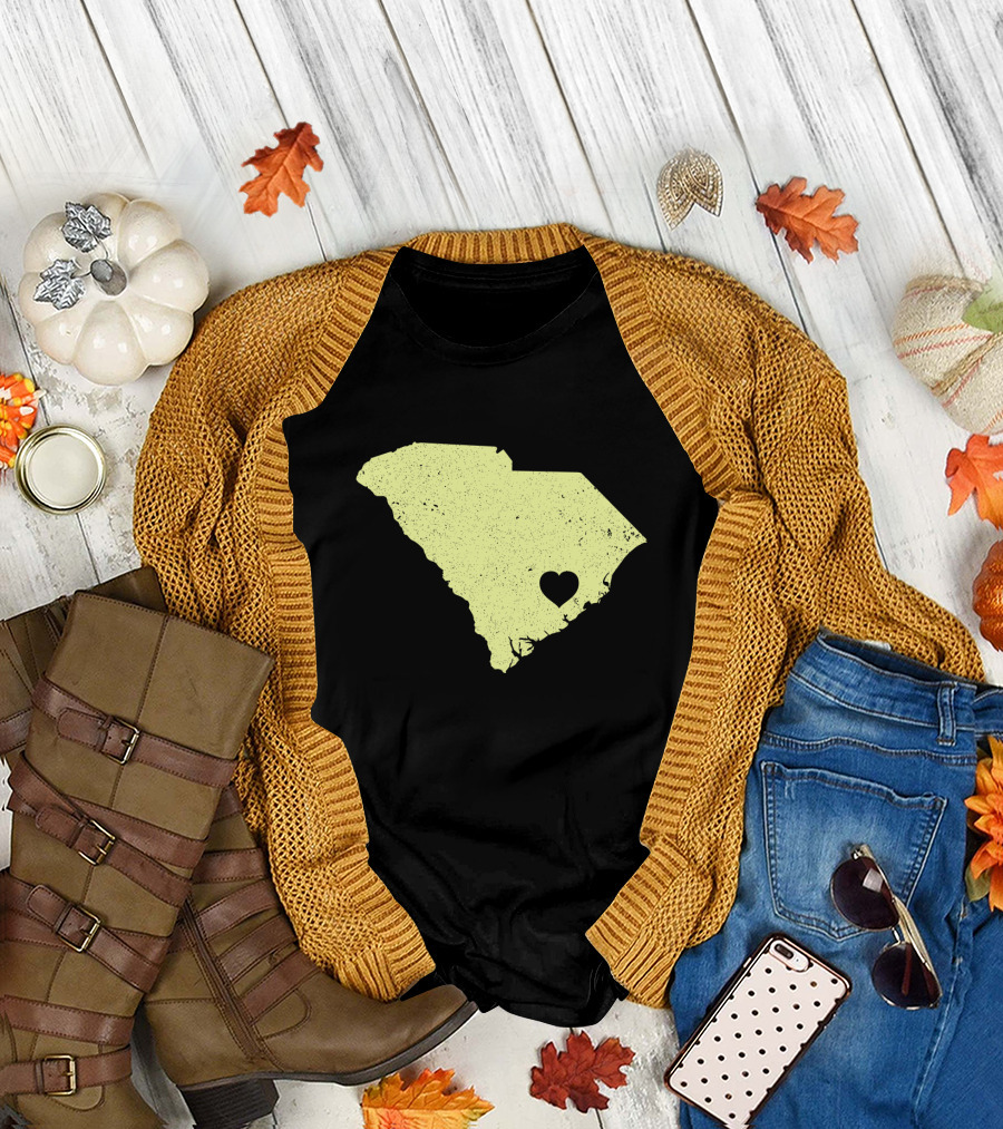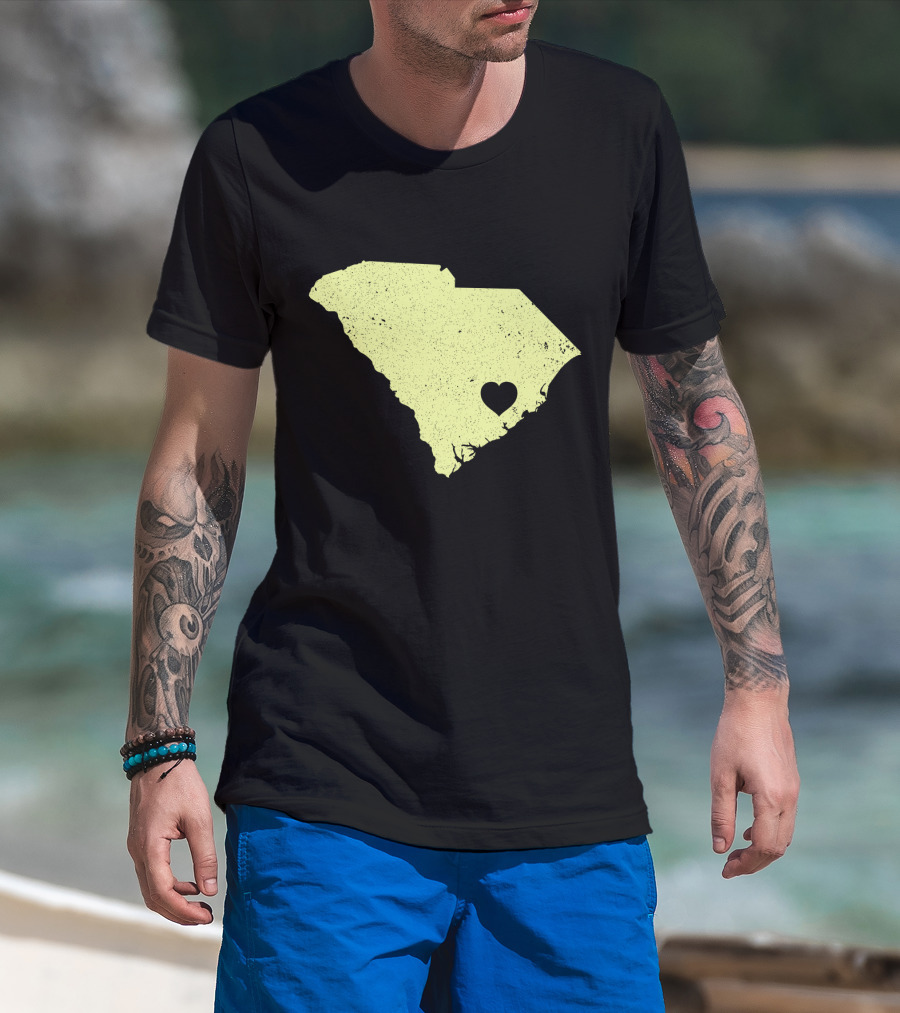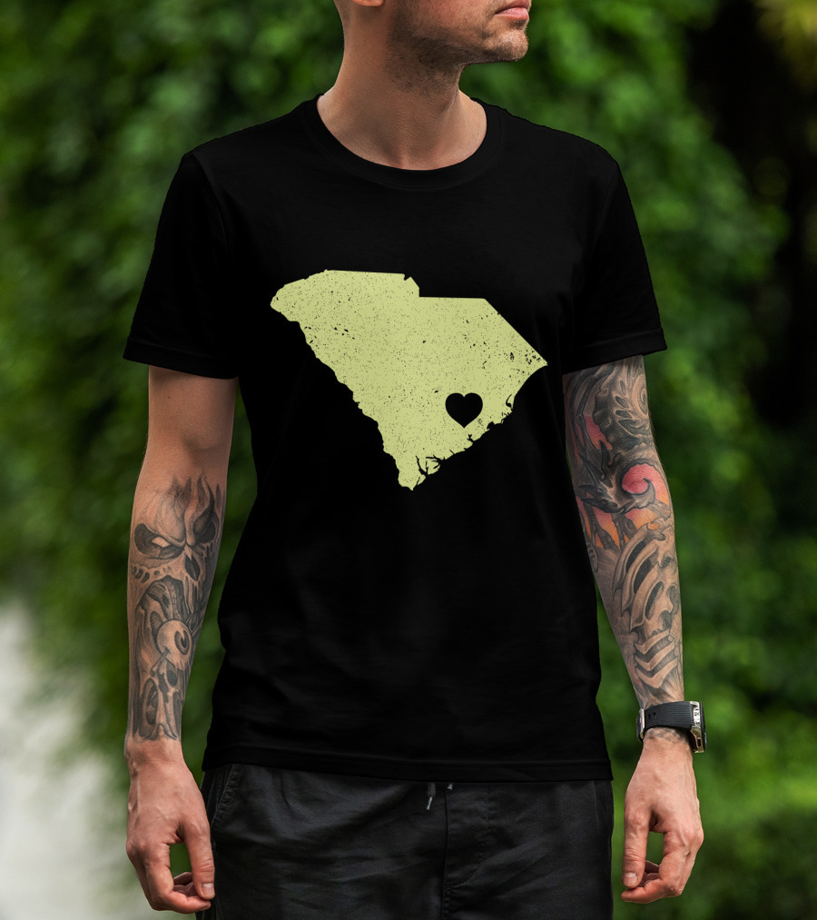 The South Carolina Map Heart Charleston Love T-shirt is designed for everyday wear and a consistent fit. Fabric is pre-shrunk ring-spun cotton with durable stitching. See the size chart below for exact measurements.