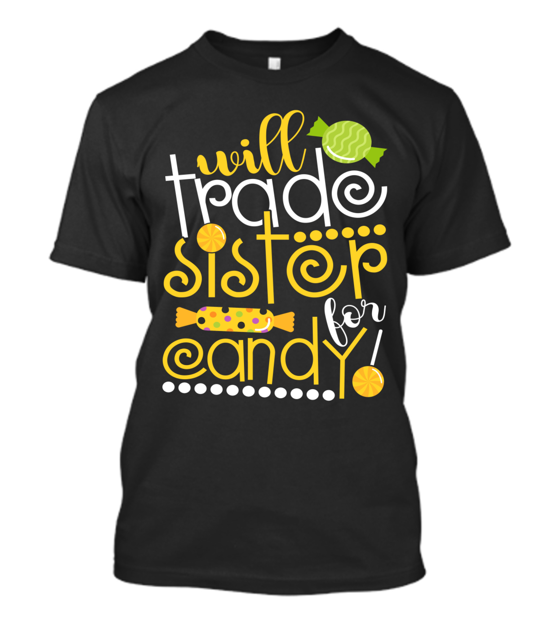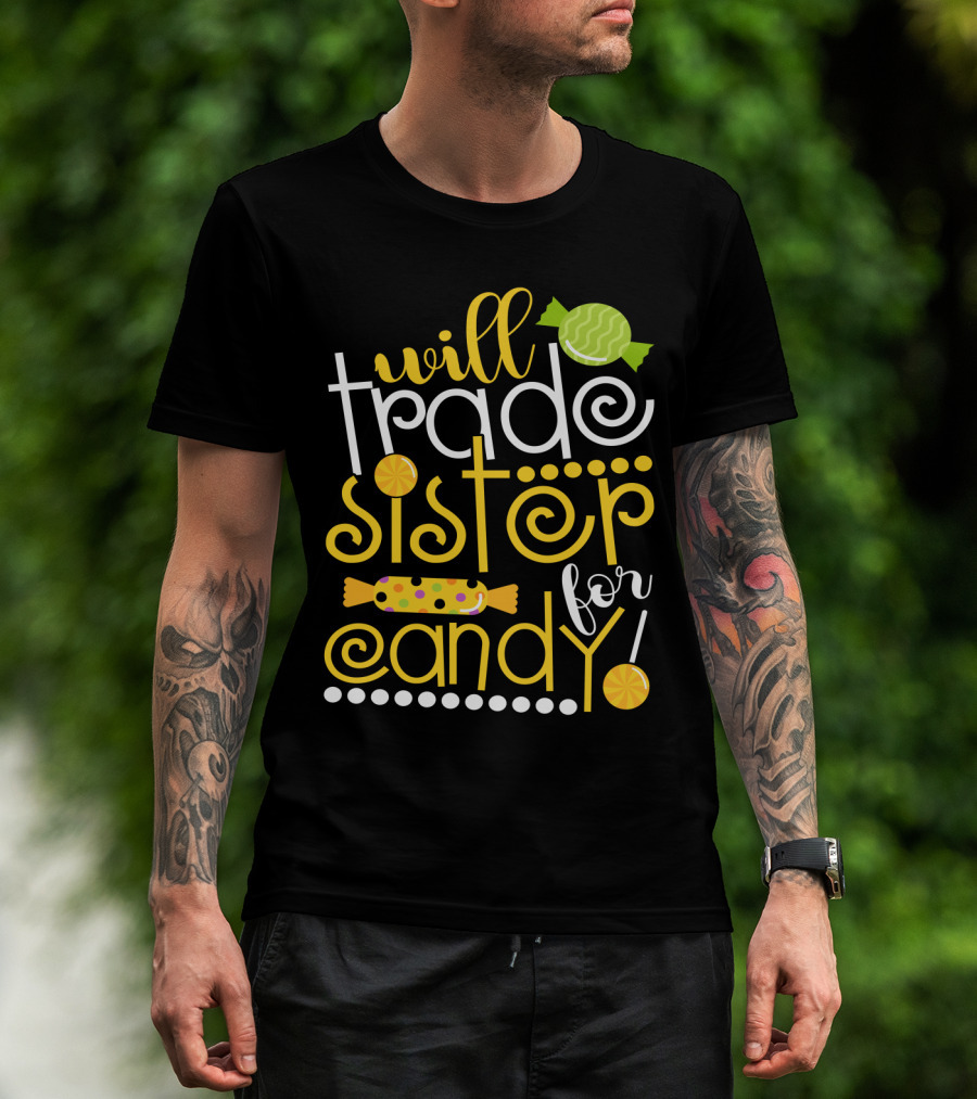 Will Trade Sister For Candy Fun Whimsical Text With Candy Icons T-Shirt