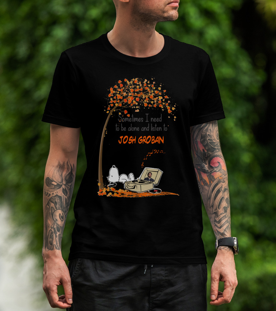 Snoopy Sometimes I Need To Be Alone And Listen To Josh Groban Fall Tree Scene T-Shirt