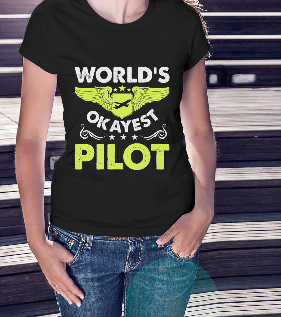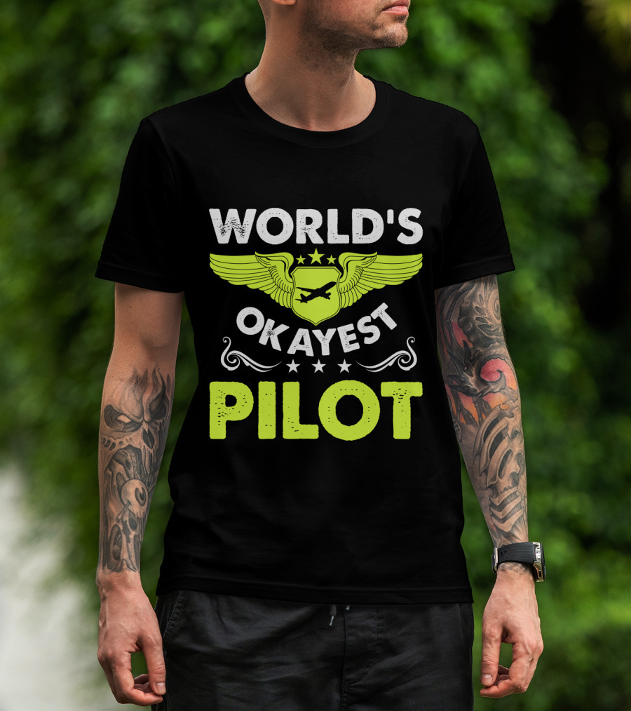 WORLD'S OKAYEST PILOT Wing Emblem Stars T-Shirt