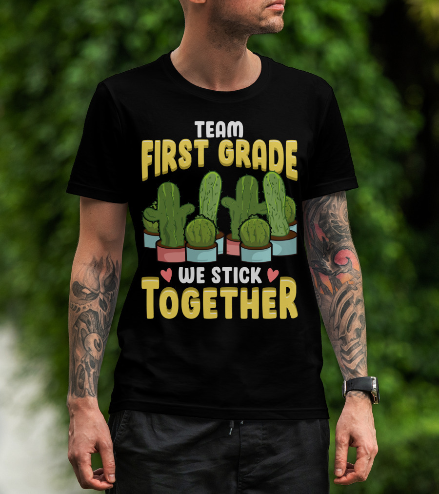 Team First Grade We Stick Together Cactus Hearts First Day Of School T-Shirt