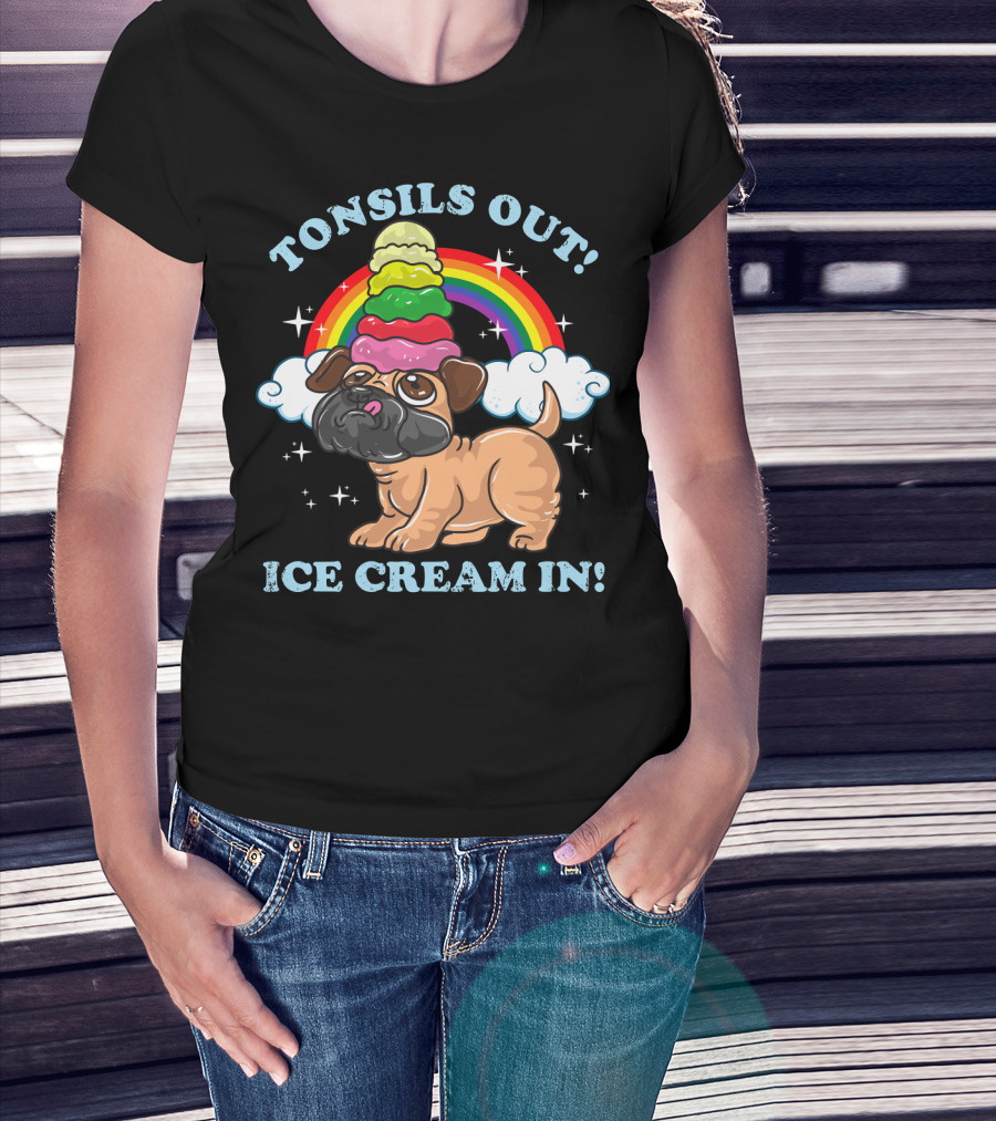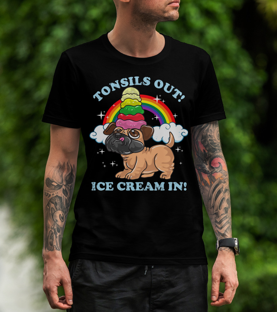 Tonsils Out Ice Cream In Funny Pug Rainbow T-Shirt