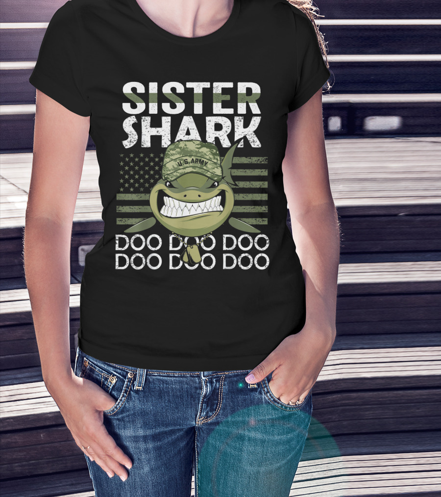 Sister Shark U.S. Army Doo Doo Doo American Flag T-Shirt