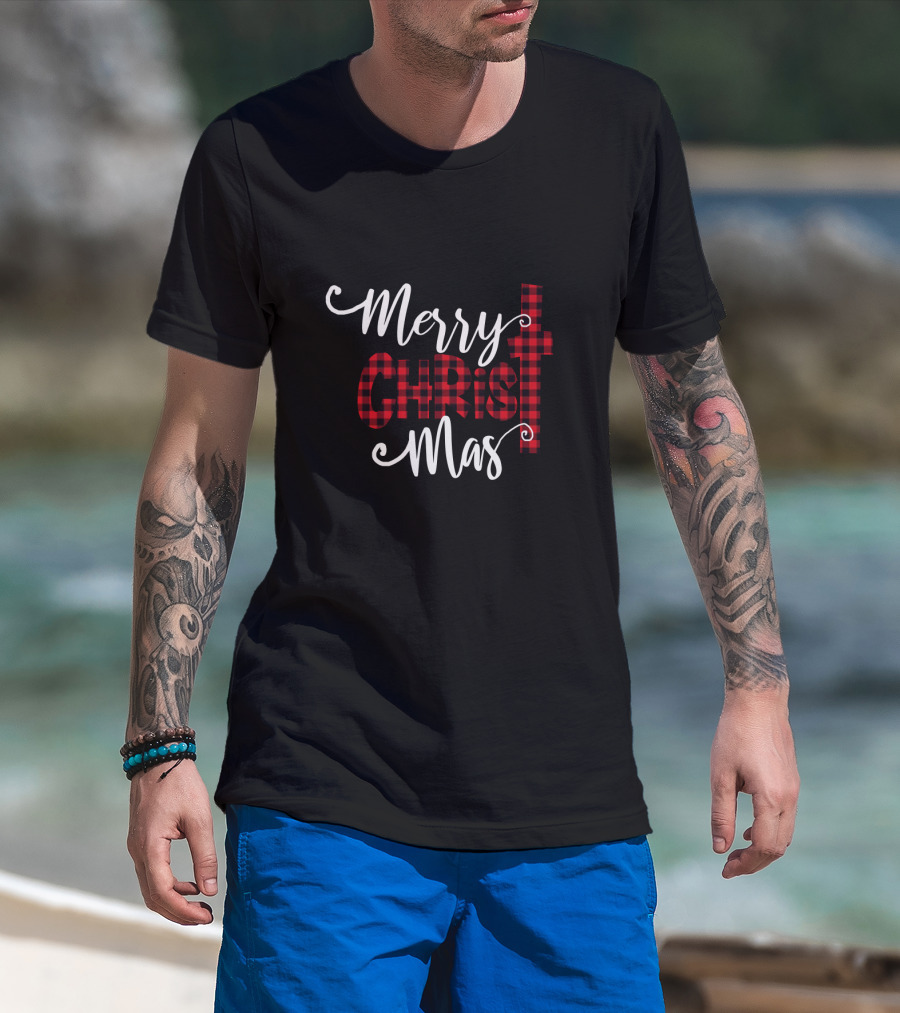 Merry Christ Mas Buffalo Plaid Cross T-Shirt