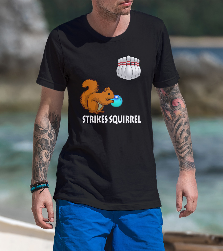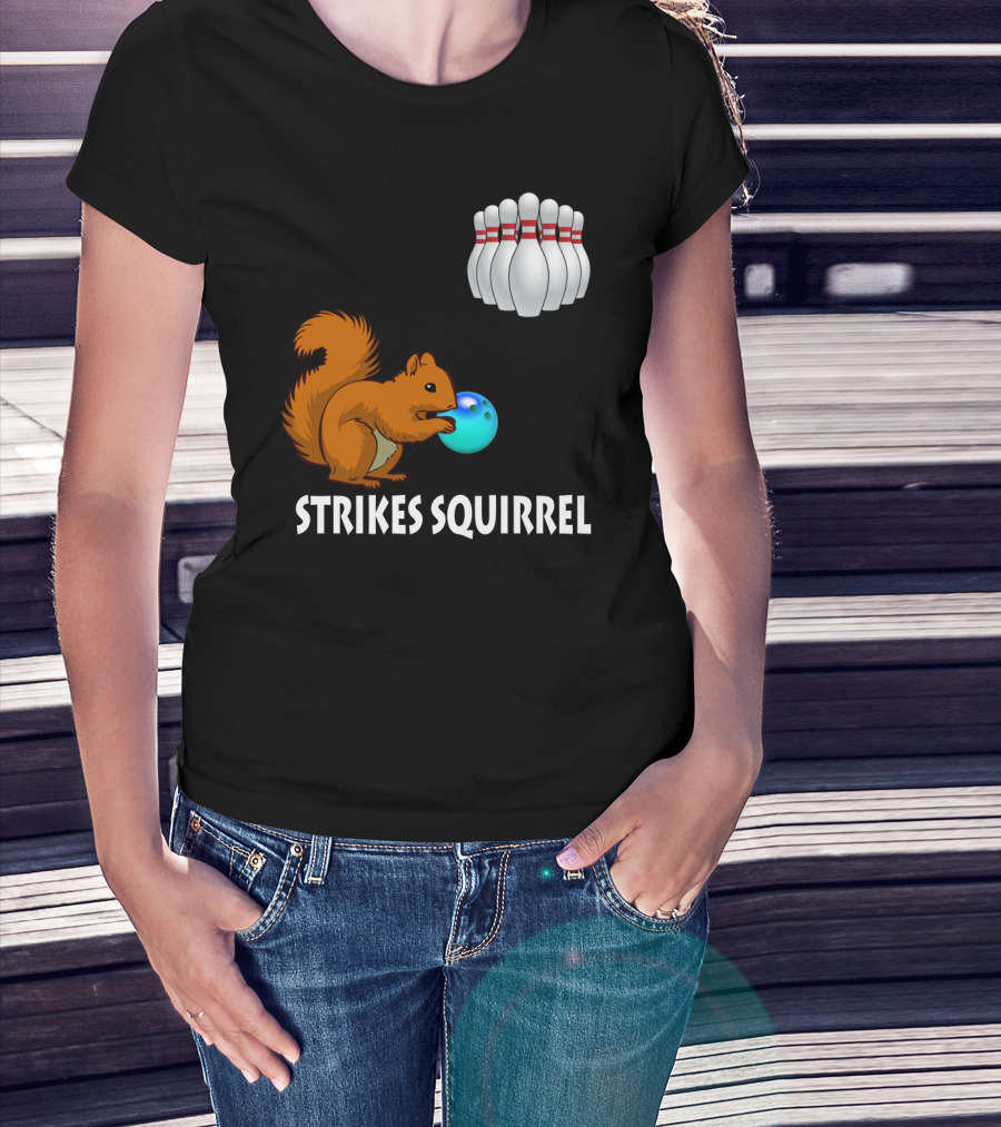 Strikes Squirrel Bowling Ball And Pins T-Shirt