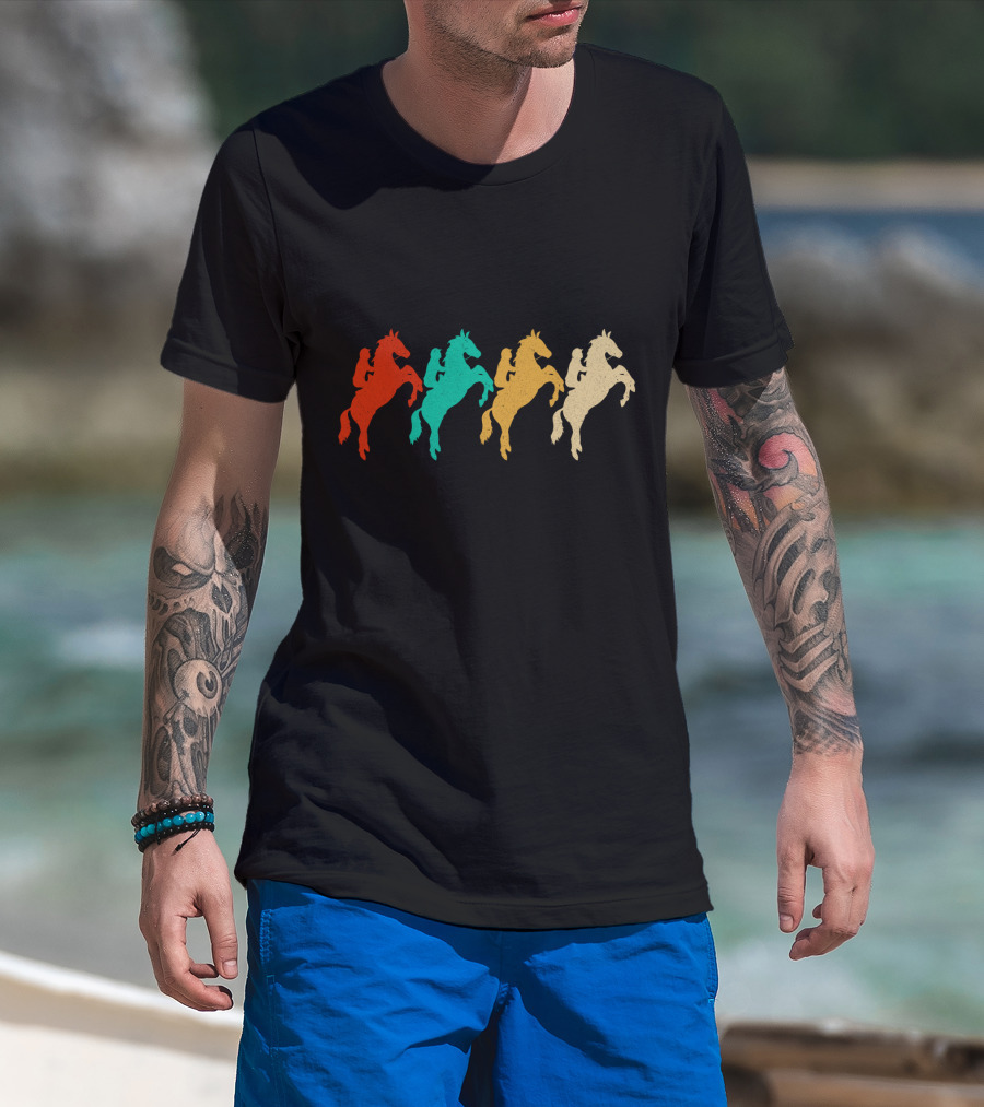 The Vintage Retro Horse Riding T-shirt is designed for everyday wear and a consistent fit. Fabric is pre-shrunk ring-spun cotton with durable stitching. See the size chart below for exact measurements.