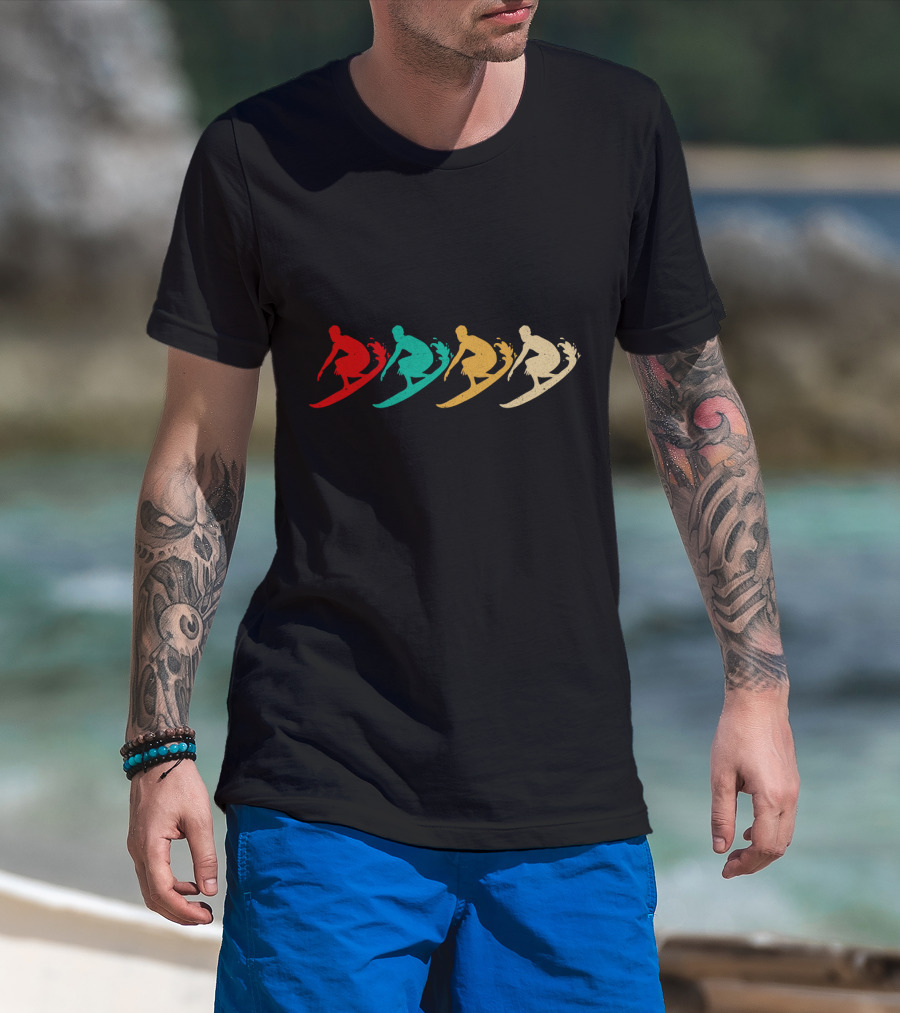 Vintage Surfing Retro Colorful Wave Riders T-Shirt