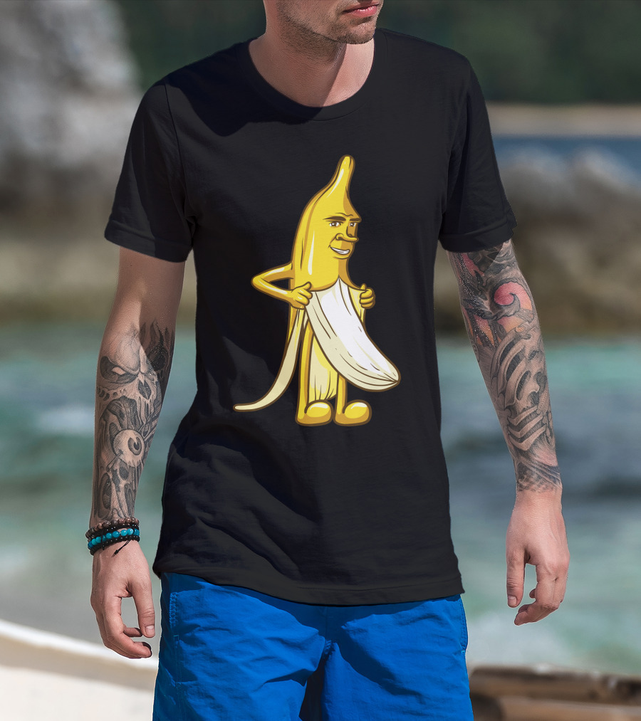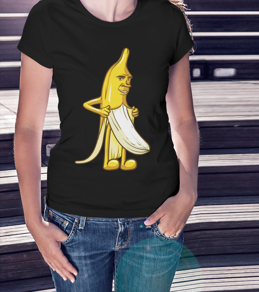 Banana Striptease Cartoon Censored Naked Peeling Comedy T-Shirt