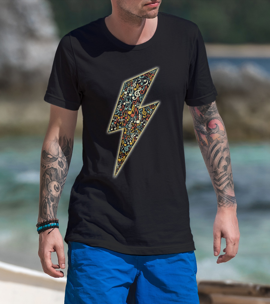 Electro Music DJ Lightning Bolt Musical Notes Disco Music Iconic T-Shirt