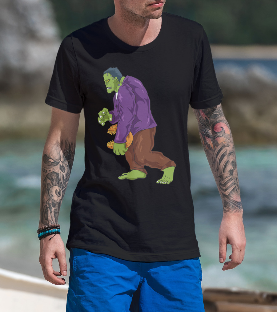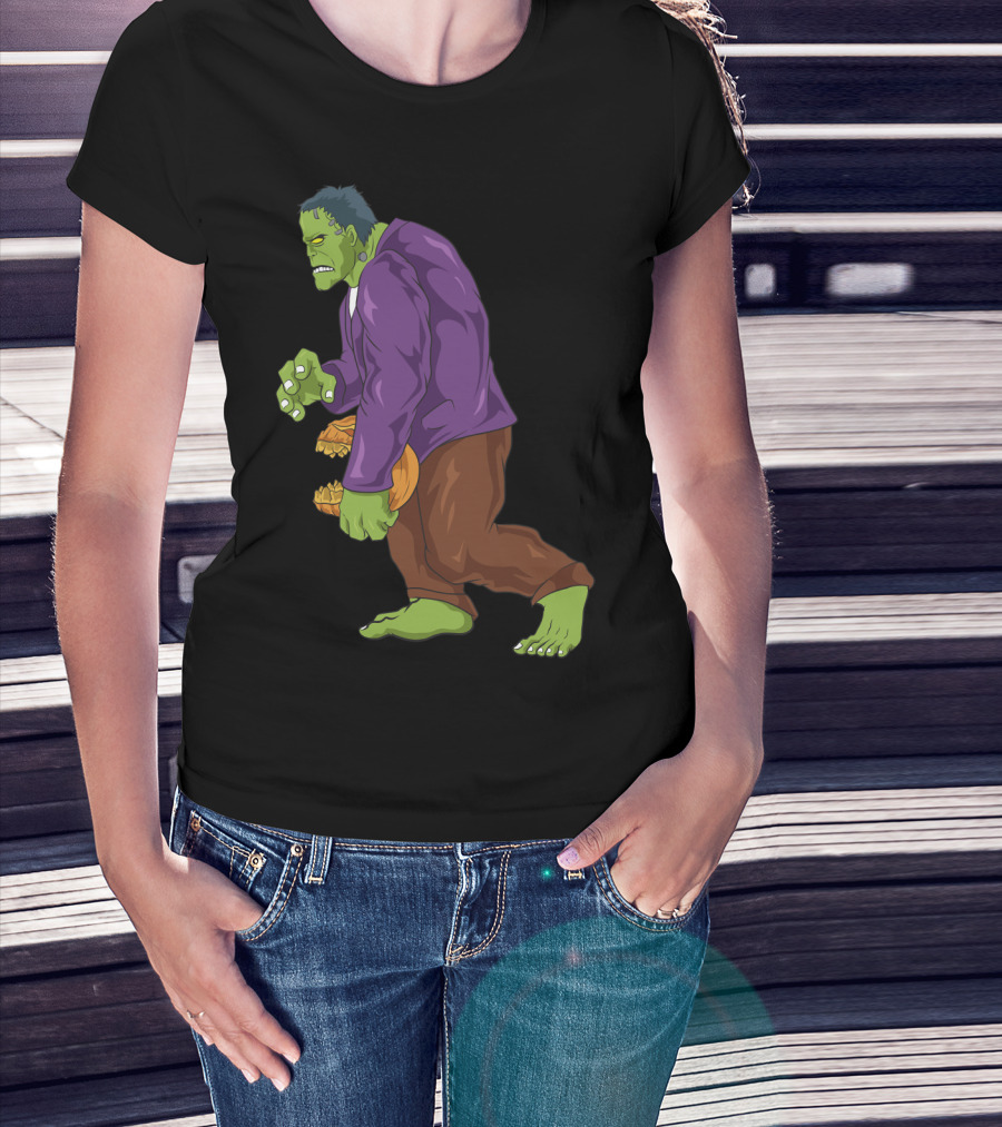 Frankenstein Bigfoot Carrying Pumpkin Funny Halloween Monster Zombie T-Shirt