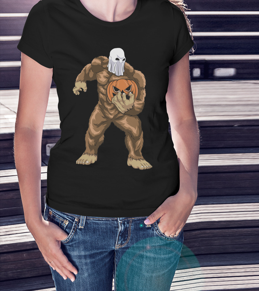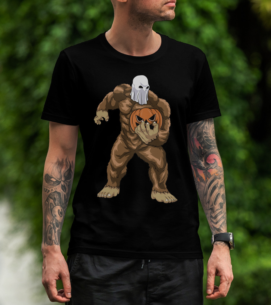 Ghost Bigfoot Sasquatch With Jack O' Lantern Head T-Shirt