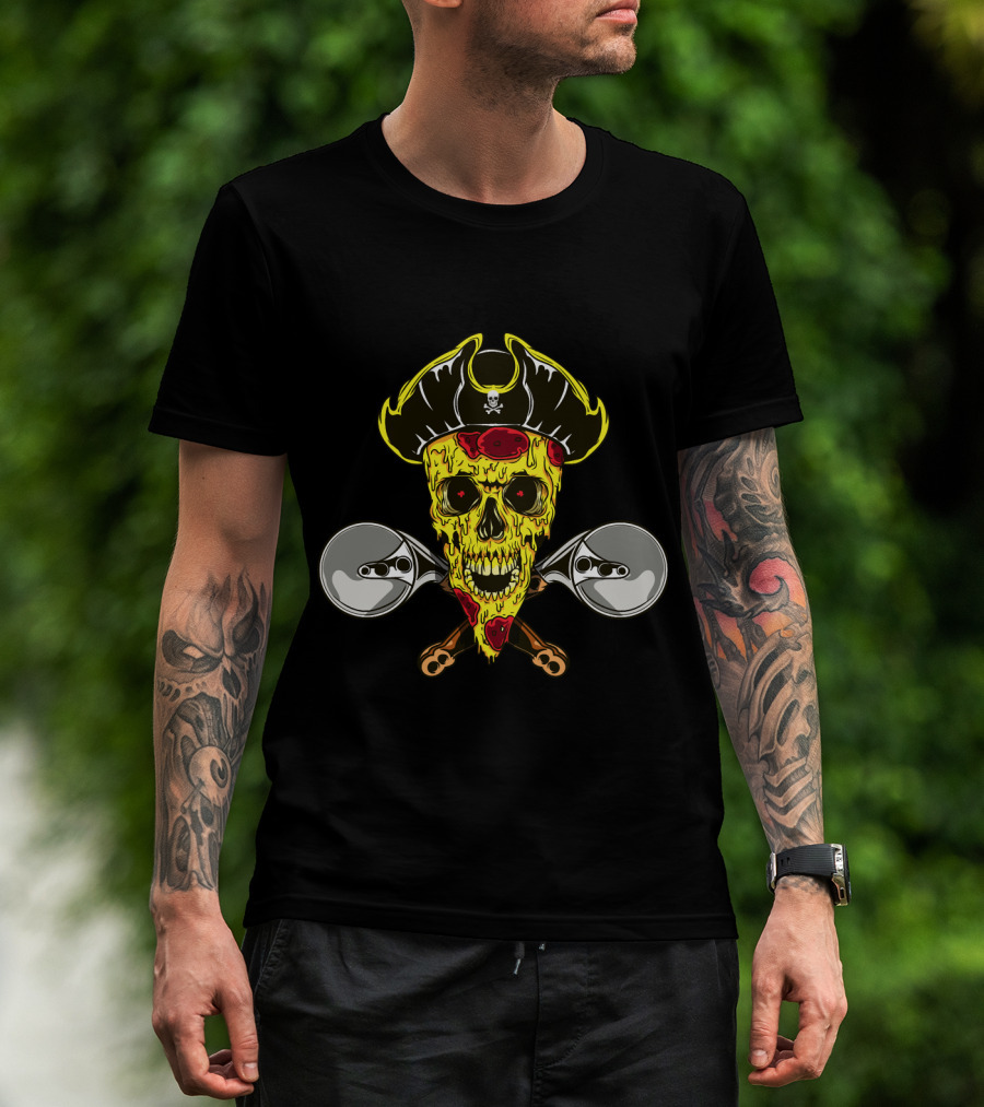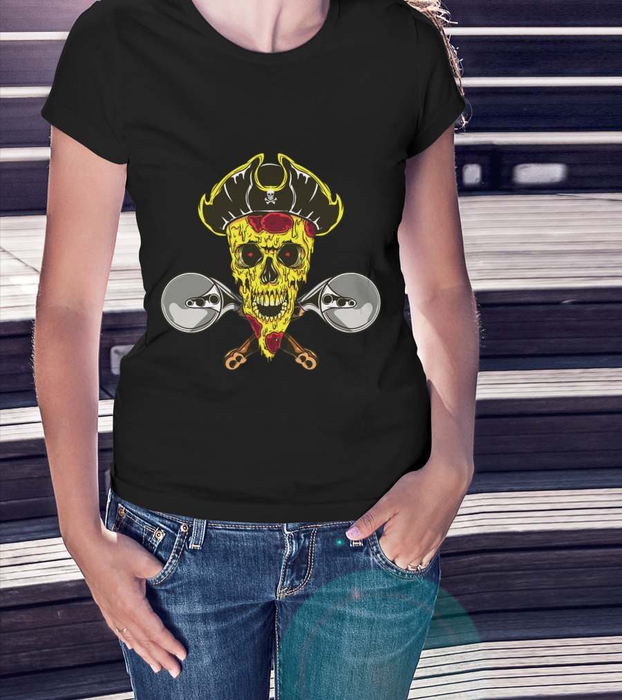 Pirate Skull Pizza With Crossed Wheel Cutters T-Shirt