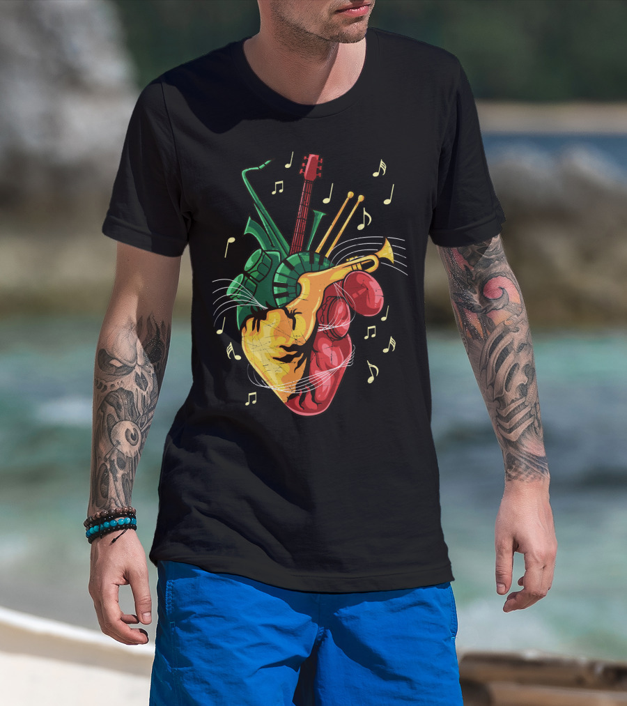 Reggae Lover Jamaican Heart Music Rastafari Instrument Fusion T-Shirt