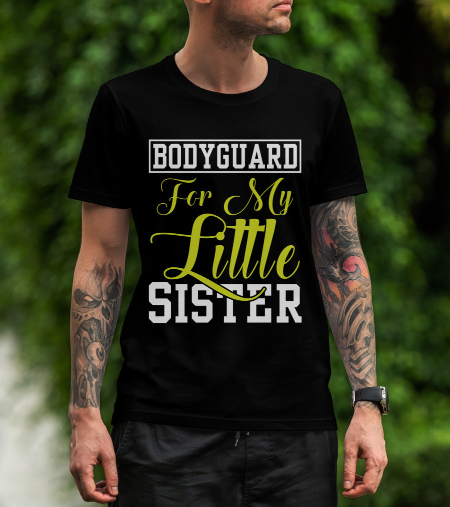 The Bodyguard for My Little Sister T-shirt is designed for everyday wear and a consistent fit. Fabric is pre-shrunk ring-spun cotton with durable stitching. See the size chart below for exact measurements.