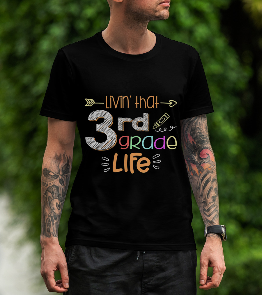 Livin' That 3rd Grade Life Colorful Classroom Teacher Fun T-Shirt