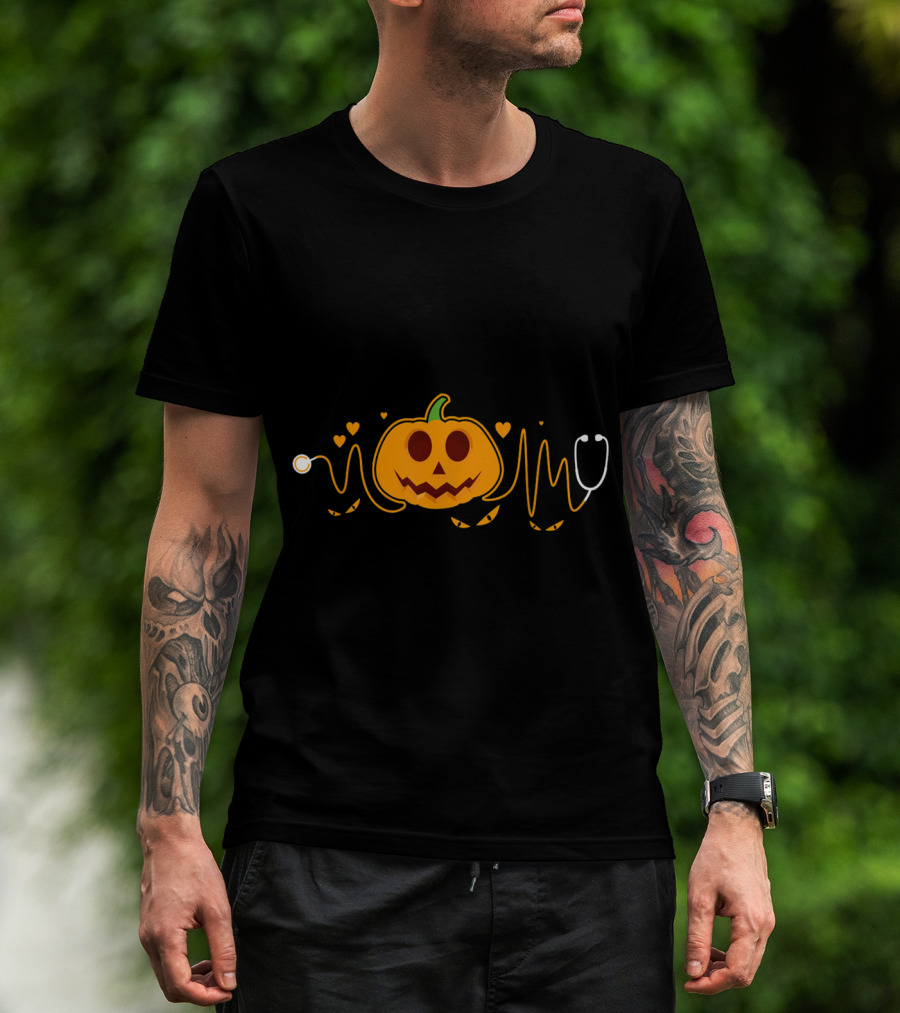 Nurse Doctor Stethoscope Pumpkin Halloween Funny Nursing T-Shirt
