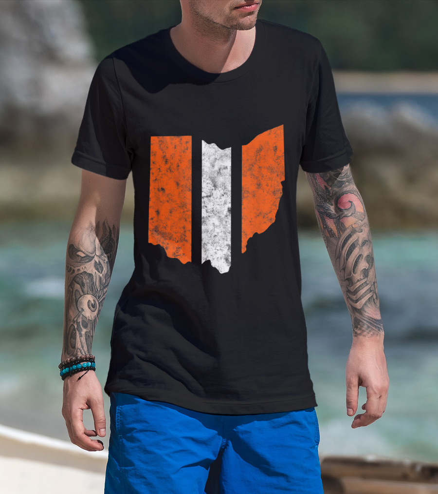 Ohio Cleveland Football Stripe Fan Map T-Shirt