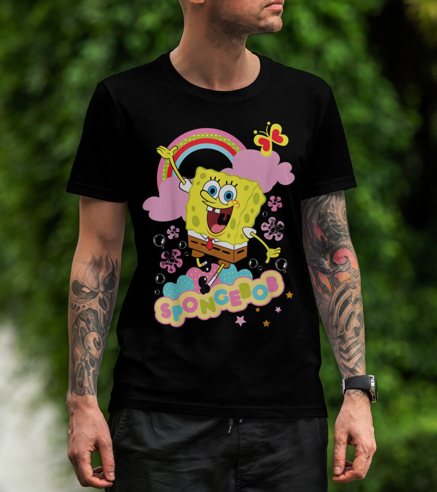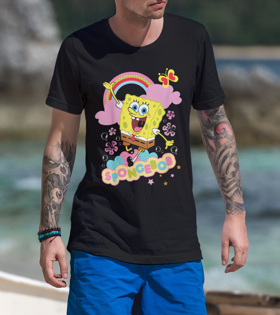 SpongeBob SquarePants Rainbow Clouds Bubbles Butterfly Flowers Stars T-Shirt