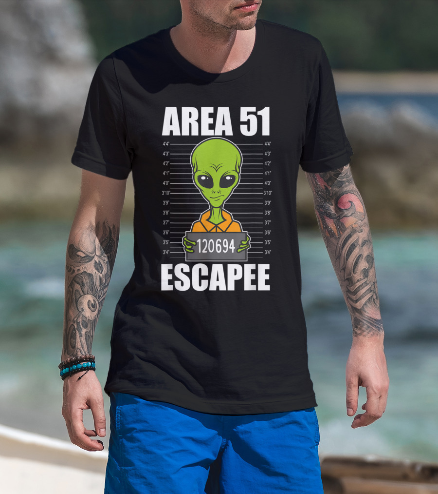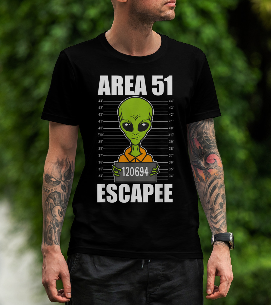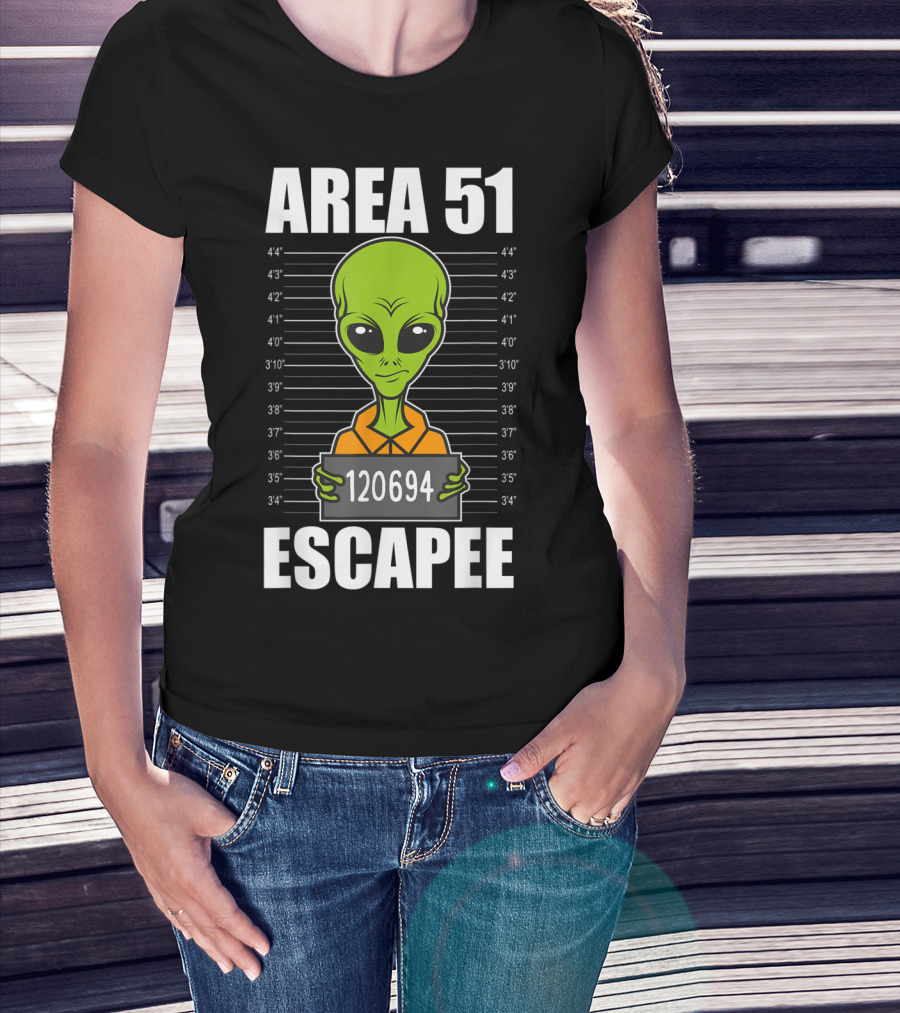 Area 51 Escapee Alien Mugshot With Height Chart T-Shirt