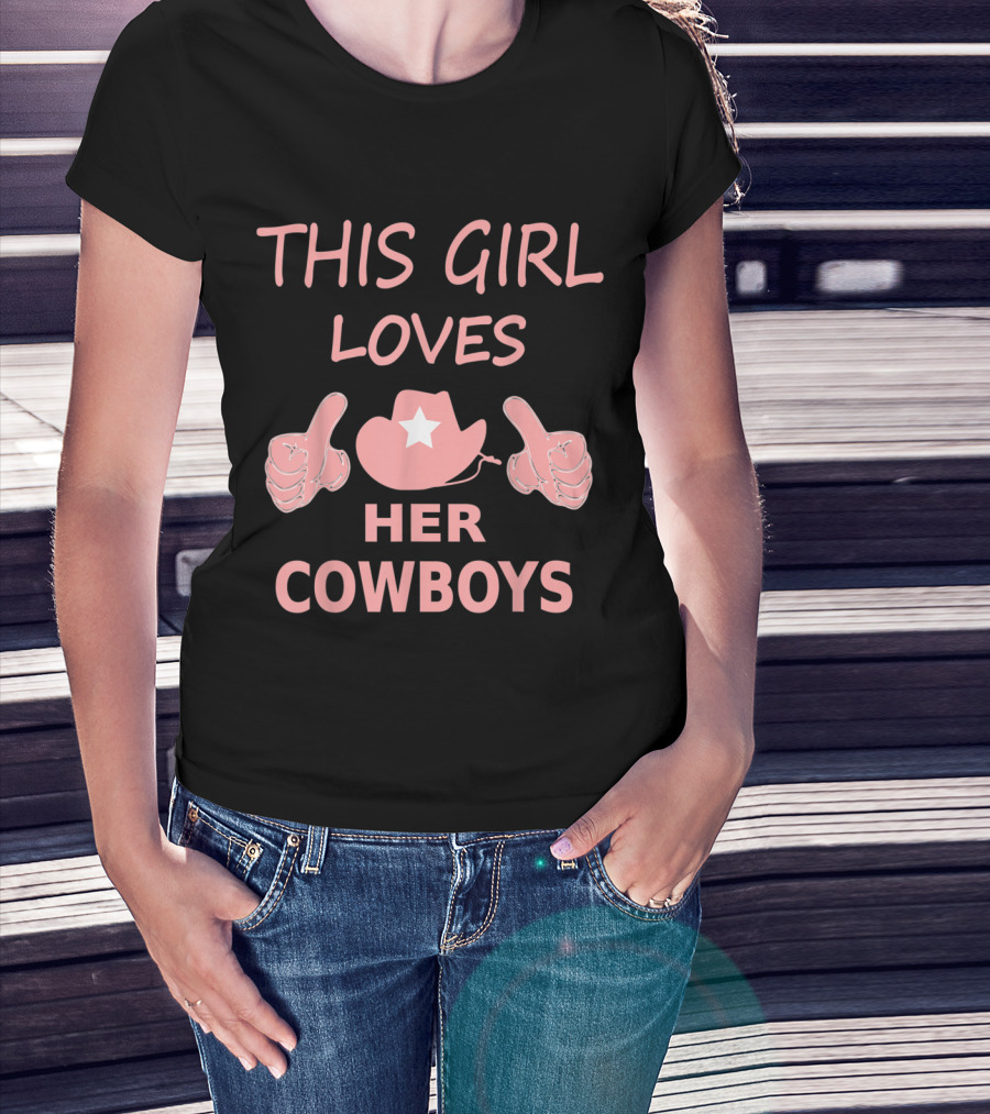 This Girl Loves Her Cowboys Cute Football Cowgirl Hat Thumbs Up T-Shirt