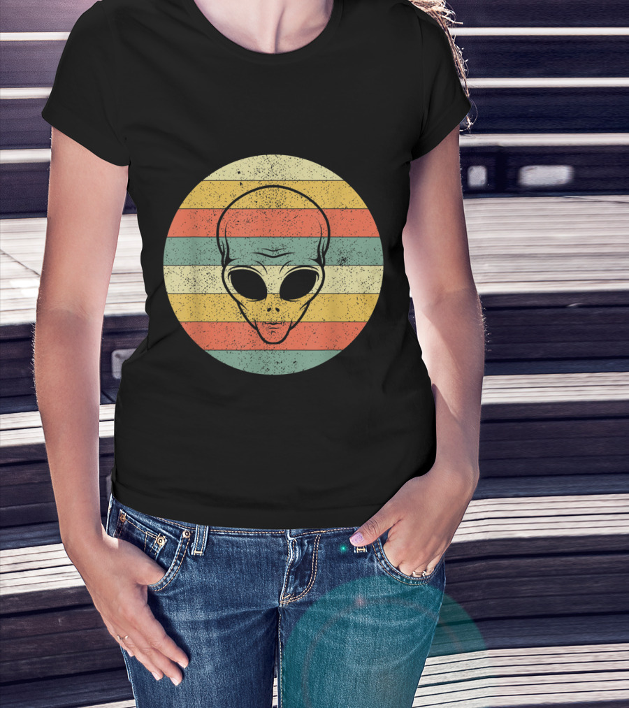 Vintage Distressed Alien Halloween Space Lover Retro Stripes T-Shirt