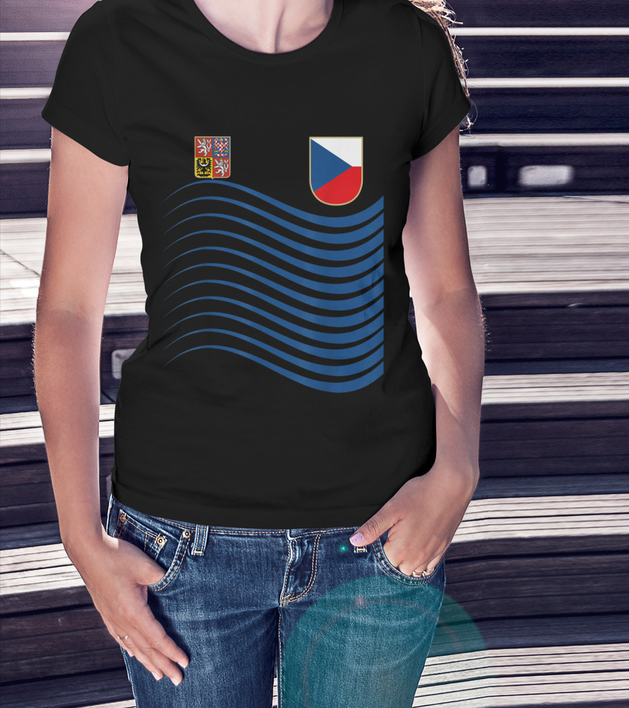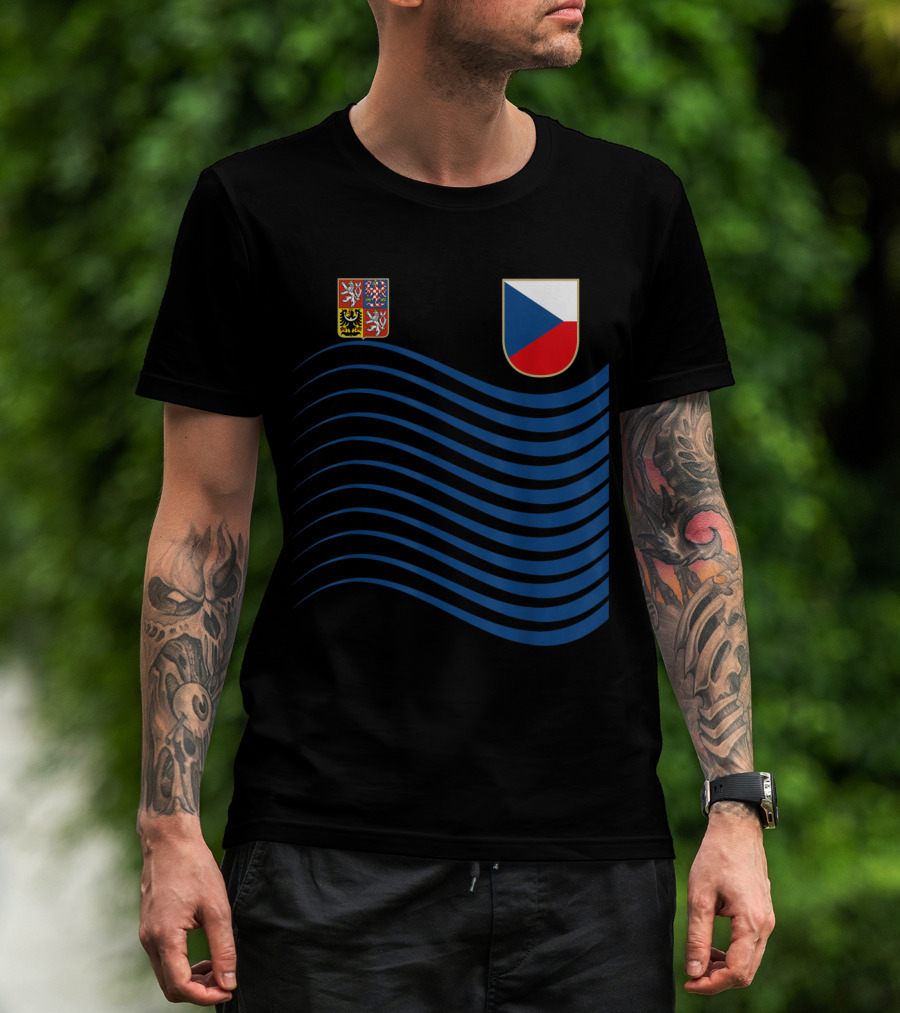 Czech Republic Soccer Jersey Czech Flag Coat Of Arms Waves Basketball T-Shirt