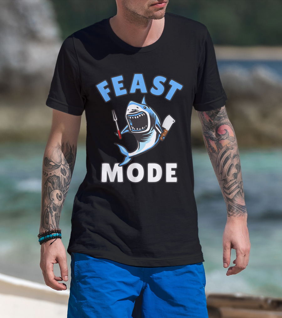 Feast Mode Great White Shark Cartoon Thanksgiving Kids T-Shirt