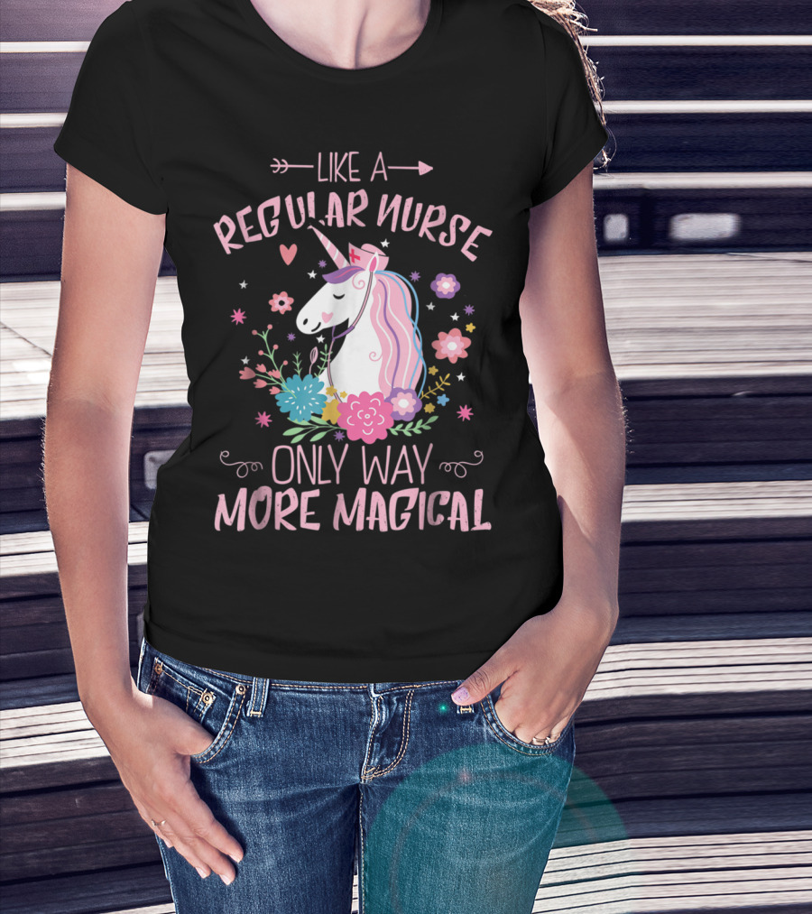 Funny Floral Magical Unicorn Like A Regular Nurse Only Way More Magical T-Shirt