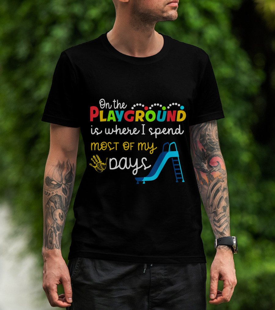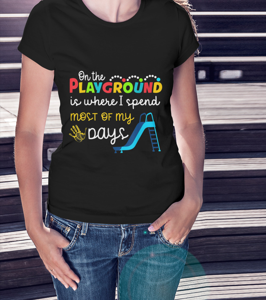 On The Playground Is Where I Spend Most Of My Days Slide Handprint T-Shirt