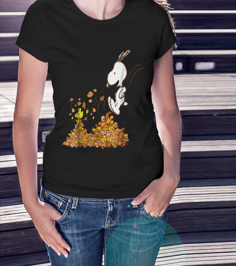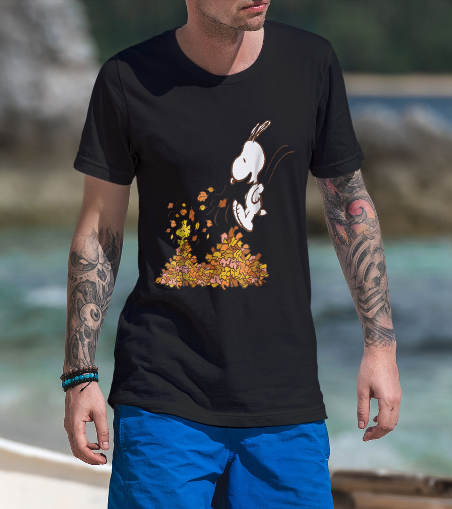 Funny Snoopy Jumping Into Leaves Peanuts Charlie Brown T-Shirt
